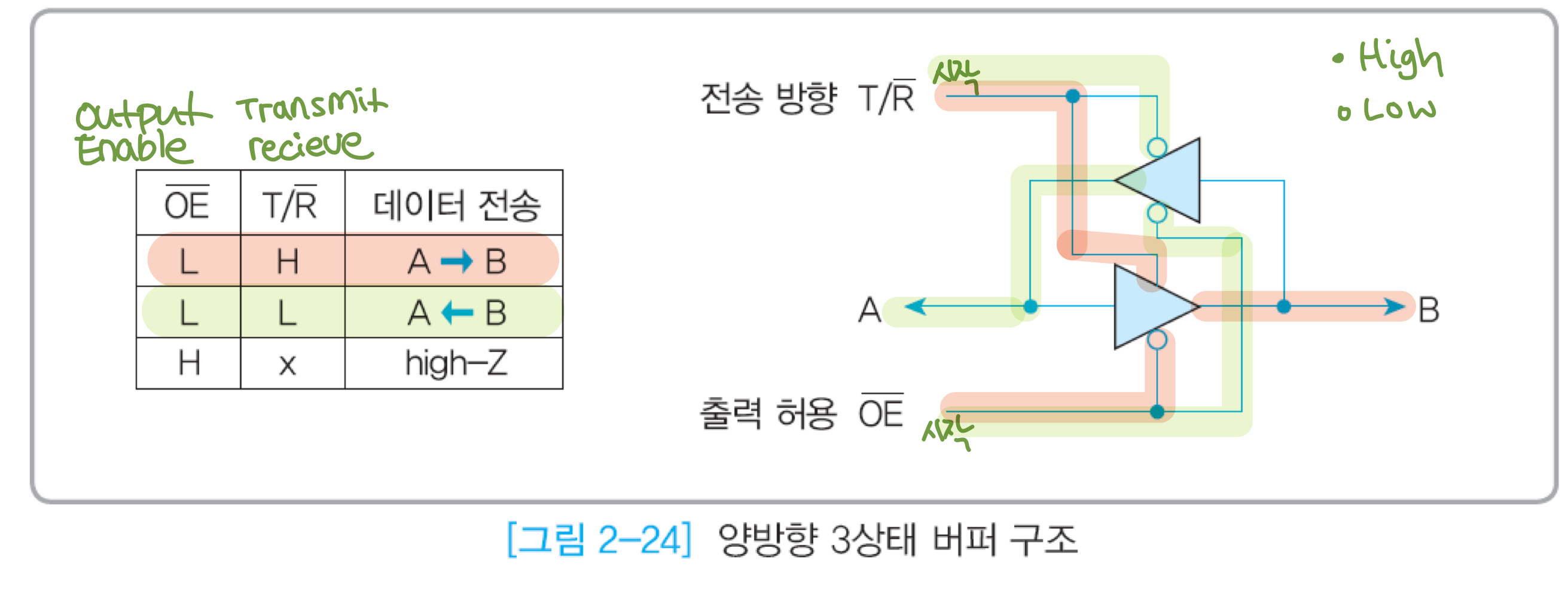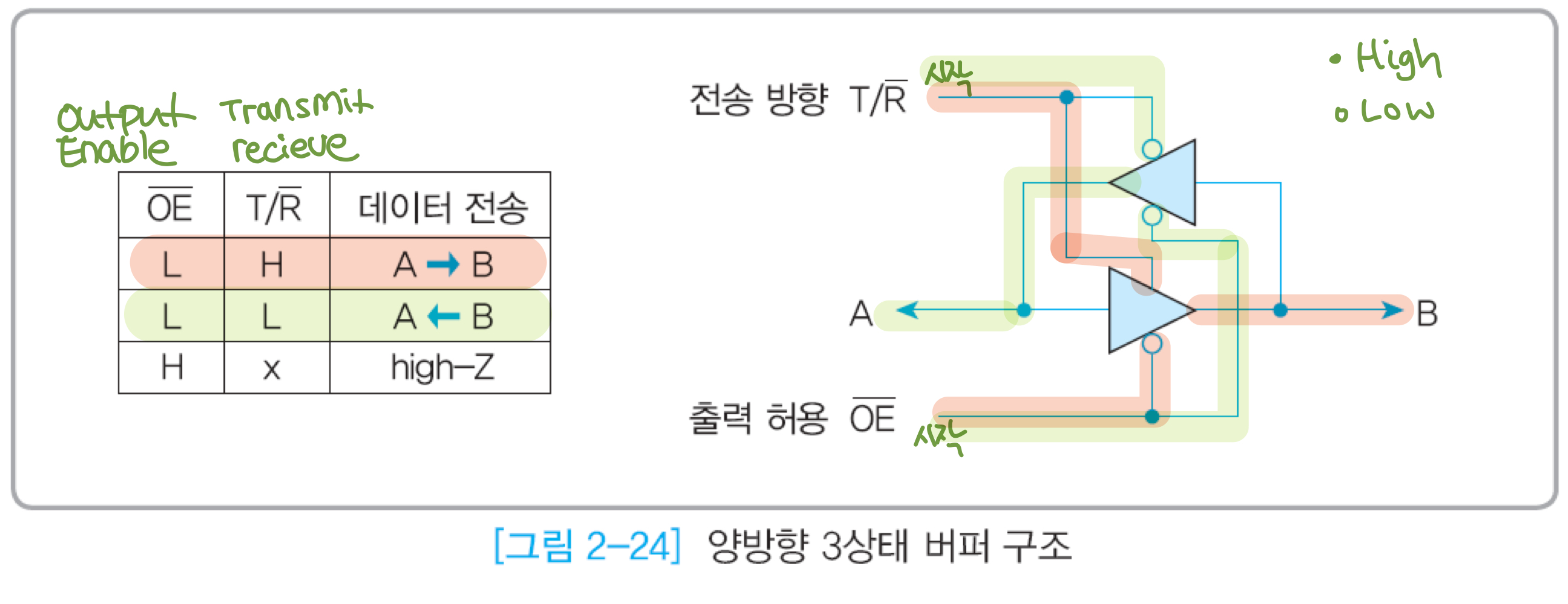 - 양방향 버스 이용하려면 전송방향을 바꿔야함. 그때 양쪽 출력 레벨이 서로 충돌하지 않게 조치해햐함.