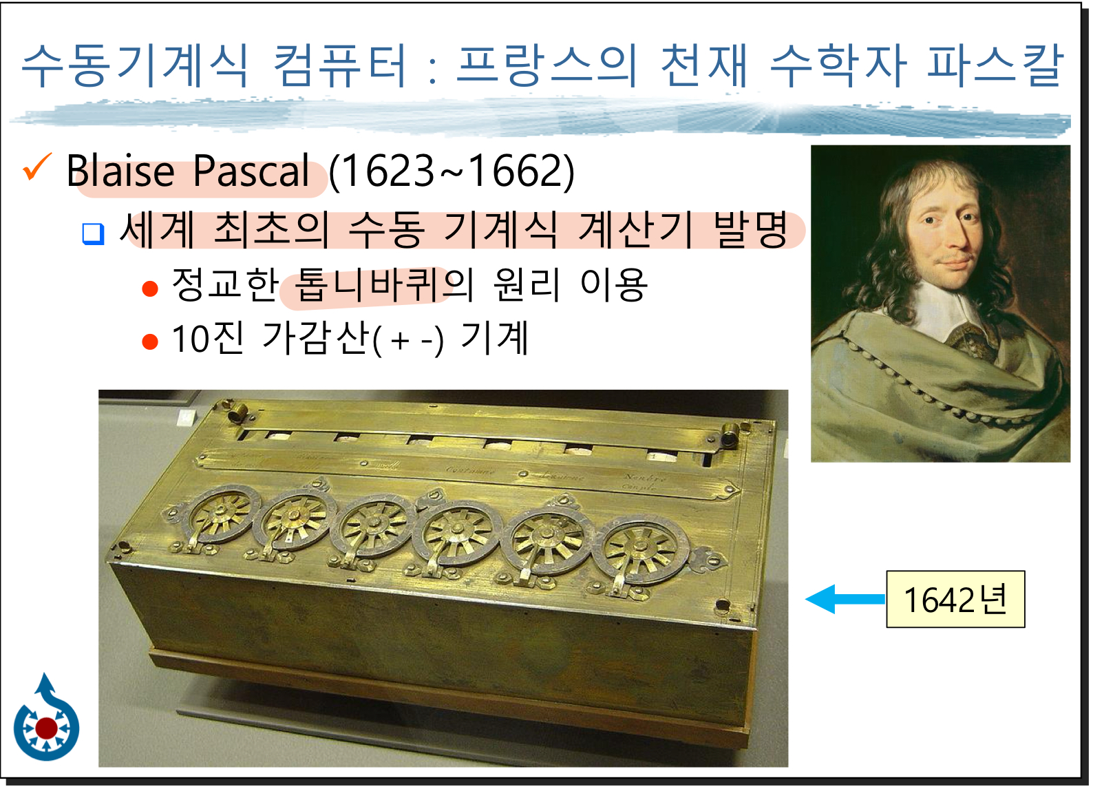 1642 - 계산기 - 프랑스 파스칼, 수동기계식 계산기(톱니바퀴 원리)- 수동 기계식